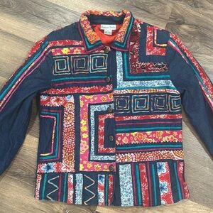 Madison Studio embroidered jacket 100% Cotton button up multicolor look size S