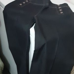Very nice dark jeans with 4 buttons on each side never worn beautiful crazy wide leg there a little dressy