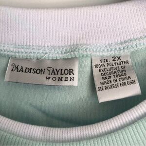 Madison Taylor Women's Sweatshirt Plus Size 2X Crew Neck Pullover Green/White (Aqua)