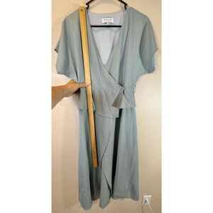 Madison The Label Women's Blue Linen Blend Wrap Midi A-Line Dress Women's XS