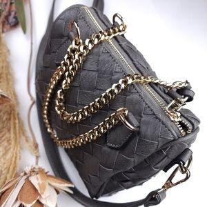 Madison West Grey Leather Weave Gold Chain Handbag / Shoulder / Crossbody