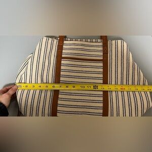 Madison West Overnight Tote and Sidekick Bag White With Black Stripes