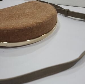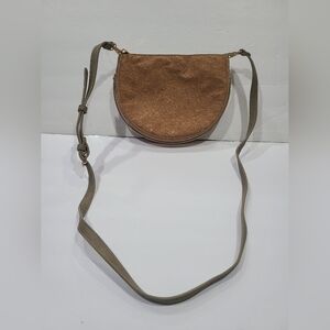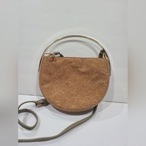 Madison West Stylish Tan Cork Crossbody Bag With Gold Handle