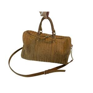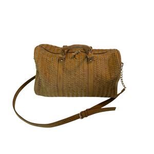 Madison West Tan Woven Satchel Shoulder Bag Chain Strap Travel Carry On NWOT