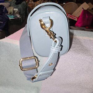 This bag is very unique. It is barrel shaped, flap opening with a magnetic closure, inside there is 1 card slot and 1 zip pocket.