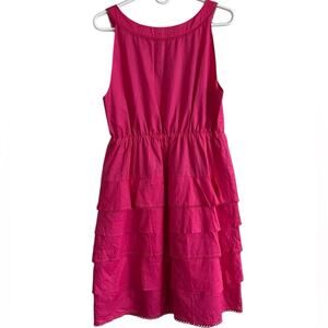 Madison Women 12 Pink 100% Cotton Lined Ruffle Crochet Preppy Classic Coctail