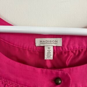 Madison Women 12 Pink 100% Cotton Lined Ruffle Crochet Preppy Classic Spring