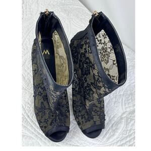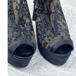 Madison Women's Size 10 Black Evy Lace Back Zip Gem Adorned Heels