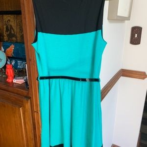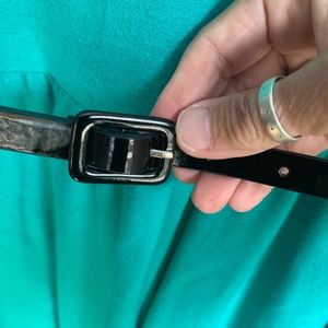 Beautiful black snd green . Patent leather belt. Flattering and fabulous . True to size