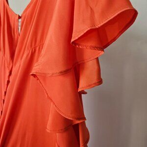 Madison by Shoedazzle Burnt Orange Flare Sleeve Faux Babydoll Blouse