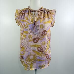 Madison d’Amelie Floral Top XS Ruffle Tie V Neck Swiss Dot Boho Retro Inspired