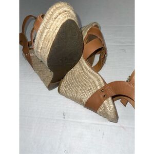 Madison Harding Espadrille Brown Leather Wedges Size 9