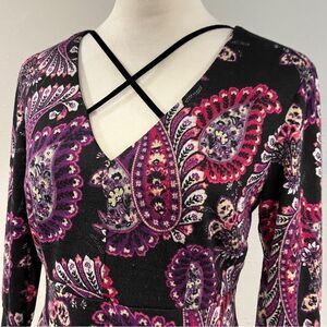 Madison Leigh paisley print Fit and Flare Dress with V-Neck Bell Sleeve size 8