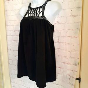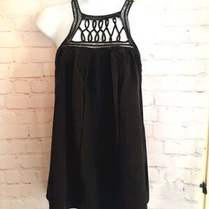 Madison Marcus Black Sleeveless Lattice Top 100% Silk Sleeveless Top