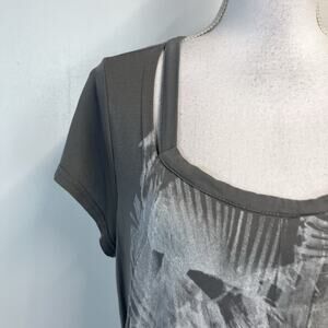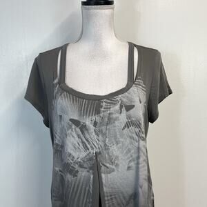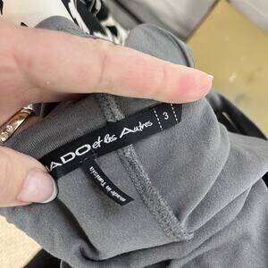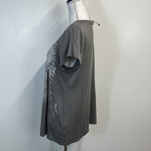 Mado et les Autres Top Women's sz L/3 Gray White Pullover Pleated Stretch Artsy