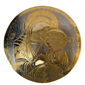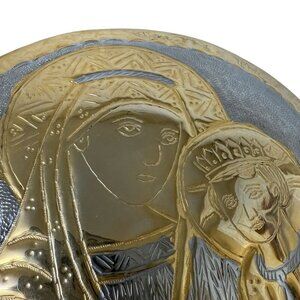Madonna and Child Metalware Religious Art Collectible Vintage Wall Hanging 9.25"