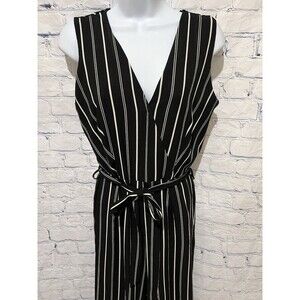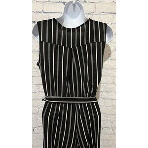 Madrag Black and White Striped Sleeveless Pant Jumpsuit with a Tie-Waist Small
