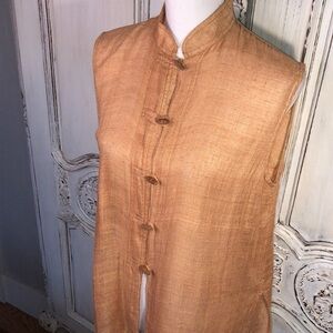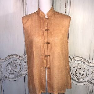 Madre Terra 100% Silk Made in India Burnt Sienna Sleeveless Mandarin Collar Top