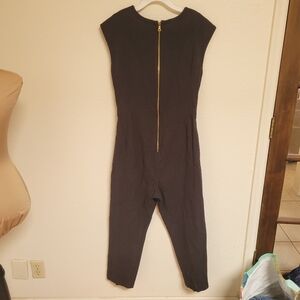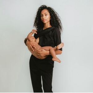 Madri Collection Mama Breastfeeding Friendly Crossover Jumpsuit Black Seersucker