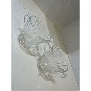 This vintage creamer and sugar set by Federal Glass Company features a Madrid pattern in clear depression glass. Made in the United States during the 1920-1949 time period, this set includes a round creamer and sugar bowl, perfect for all occasions. The mirrored finish adds a touch of elegance, while the original design exudes a Federal style. Hand wash only to preserve the vintage charm of this collectible set.