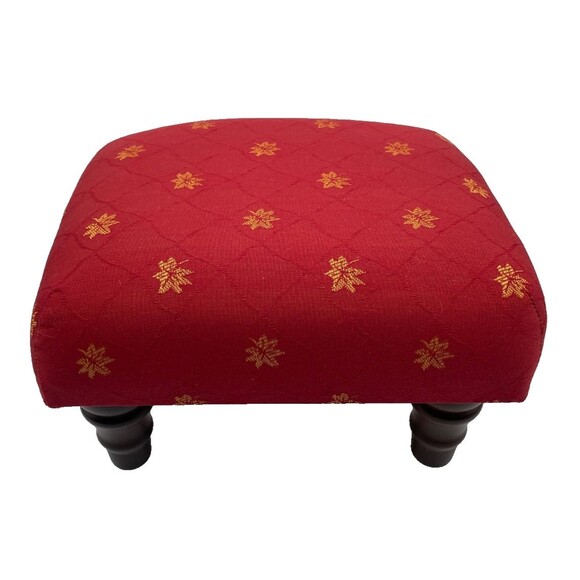 Madura Custom Made Brocade Fabric Padded Foot Stool Red & Gold Accent Piece