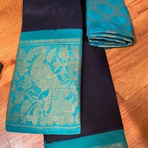 Traditional 100 counts pure Madurai Sangudi cotton saree with blouse Fabric. Plain Body and contrast color Pallu with zari weaving peacock.