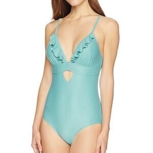 Mae Front Ruffle Cut Out One Piece Swimsuit Turquoise Size XS (0-2) 5276