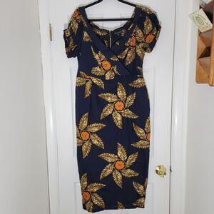 Mae Otti New without tags IDIA AFRICAN PRINT OFF SHOULDER MIDI DRESS NAVY BLUE XL.