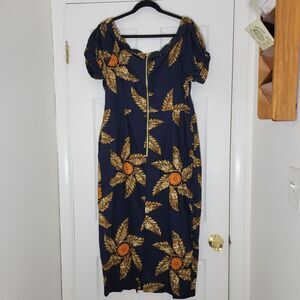 Mae Otti NWOT IDIA African Print Off Shoulder Midi Dress Navy Blue Sz XL No Belt