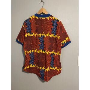 Mae Otti Shirt Womens 2XL Red Blue Yellow Button Up African Print Artsy NWT READ