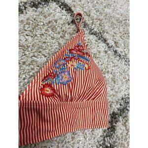 Mae Orange Stripe Embroidered Bikini Top Size Large