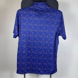 Stylish blue polo with patriotic pattern. Perfect for casual outings.