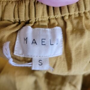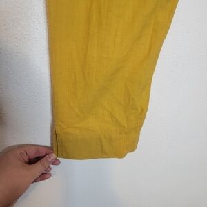 maelu linen/linen blend mustard colored breathable lagenlook pull on pants. pre owned no rips or stains. missing inside tag