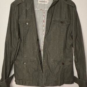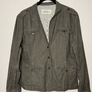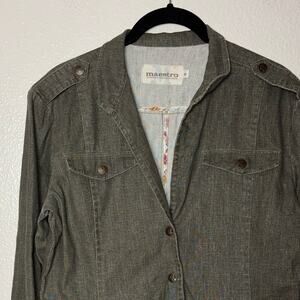 Maestro Green Linen Cotton Jacket Women's Size Medium Ruffled Y2K Boho