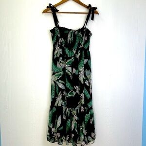 Maette - Black Tropical Colorful Multi Purpose Lined Midi Dress Size Medium