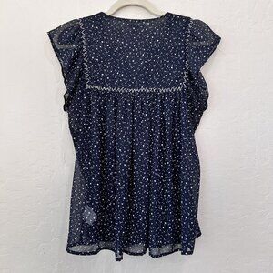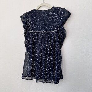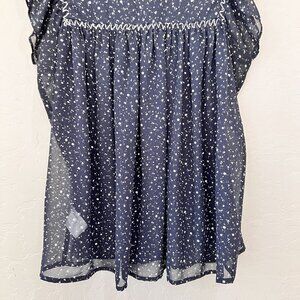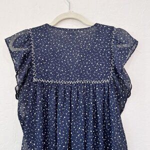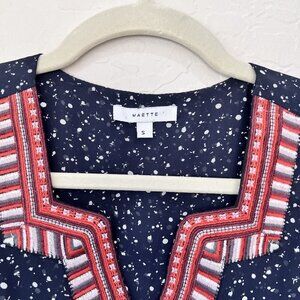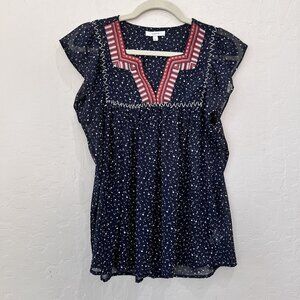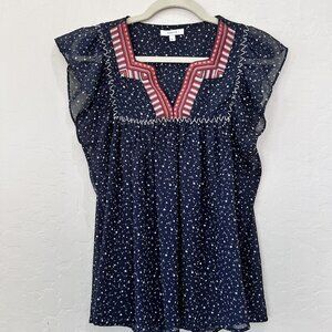 Maette Blue Charlotte Embroidered Short Sleeve Blouse Top Size Small