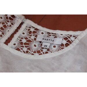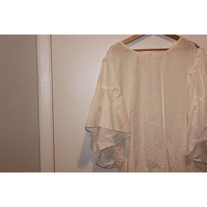 Maette Bohemian Ivory Crochet Lace Bell Sleeve Blouse 2X Womens Top