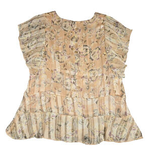 Maette Womens Small Top Peach Blouse Floral Peplum Short Sleeve Lightweight