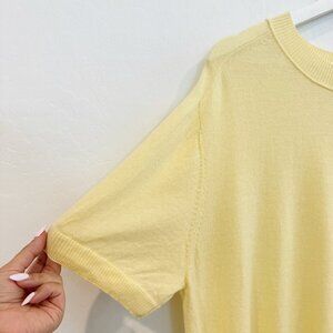Maeve 100% Merino Wool Round Neck Short Sleeve Knit Sweater Top Yellow Small