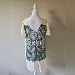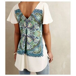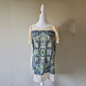 Maeve 100% Silk Boho Ivory Mandala Blouse Medium