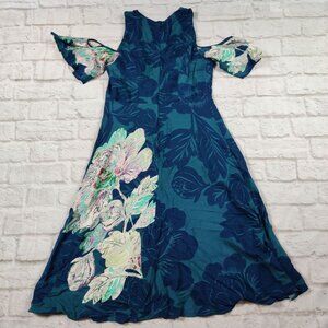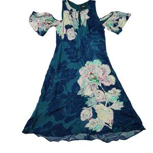 Maeve 2 Teal Cold Shoulder Floral A-Line Dress Romantic Feminine Anthropologie
