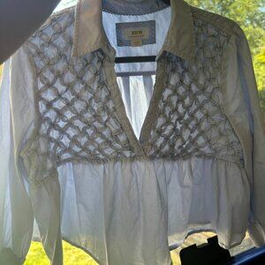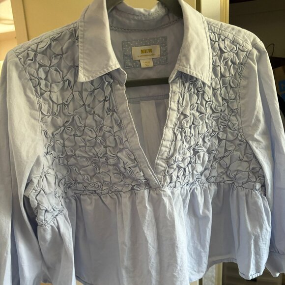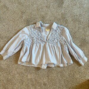 Maeve 3/4 sleeve collared shirt flowy loose light blue size large