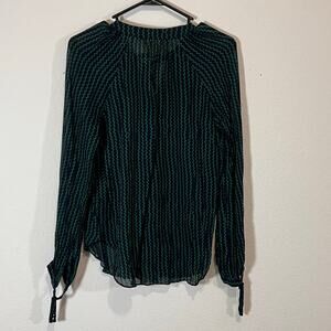 Maeve ANTHROPOLOGIE Shirt Size XS Green Navy Della Sheer Chevron Tie Neck Sleeve