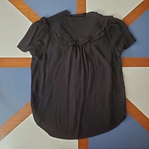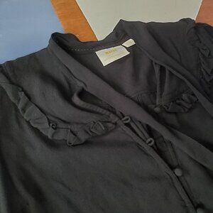 Maeve Adagio Ruffled Blouse Womens Small Black Button Up Tie Neck Anthropologie