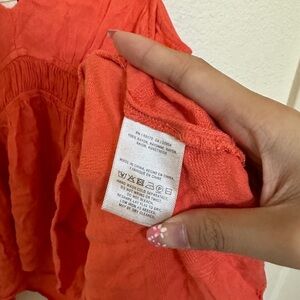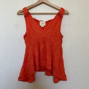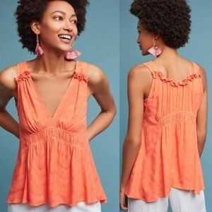 Maeve Anthro Red Orange Bretta Gathered Vneck Ruffle Babydoll Tank Top petite