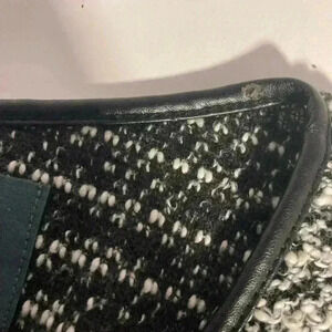 Maeve Anthropologie, Black White Boucle Knit Pockets Tweed Sweater Dress. 3/4 sleeves. Above knee length. In good condition. Top part of the dress has 2 small flaws, and a pulling on thread. Shown in last 3 pics.