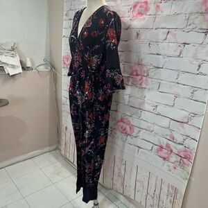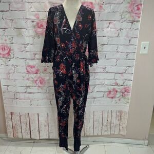 Maeve Anthropologie 3/4 bell sleeve tapered leg tie waist jumpsuit size 12