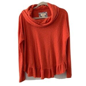 Maeve Anthropologie Size Small Orange Addie Ruffled Hacci Knit Cowl Neck Sweater