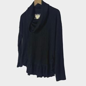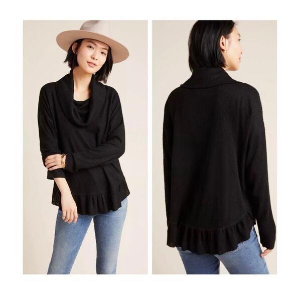 Maeve Anthropologie Addie Ruffled Hacci Sweater Black XS Boho Bohemian Cozy Soft