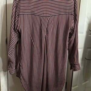 Multicolored Maeve Anthropologie Adelaide Poplin Striped Shirt Button-down Top. High-low top long sleeve blouse size Small.